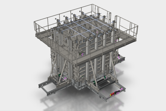 East Asia High-Rise Residential Project: This project adopted cantilever bracket formwork to meet building formwork needs. The system, lifted by tower cranes, allows simultaneous elevation of the formwork and brackets, ensuring fast, simple, and safe operation. With lower construction costs, it maintains high efficiency and strict cost control. Applicable to inner and outer walls, core shear walls, large columns, irregular columns, bridge piers, and silos, it provides a reliable formwork, support, and working platform solution for vertical concrete structures.