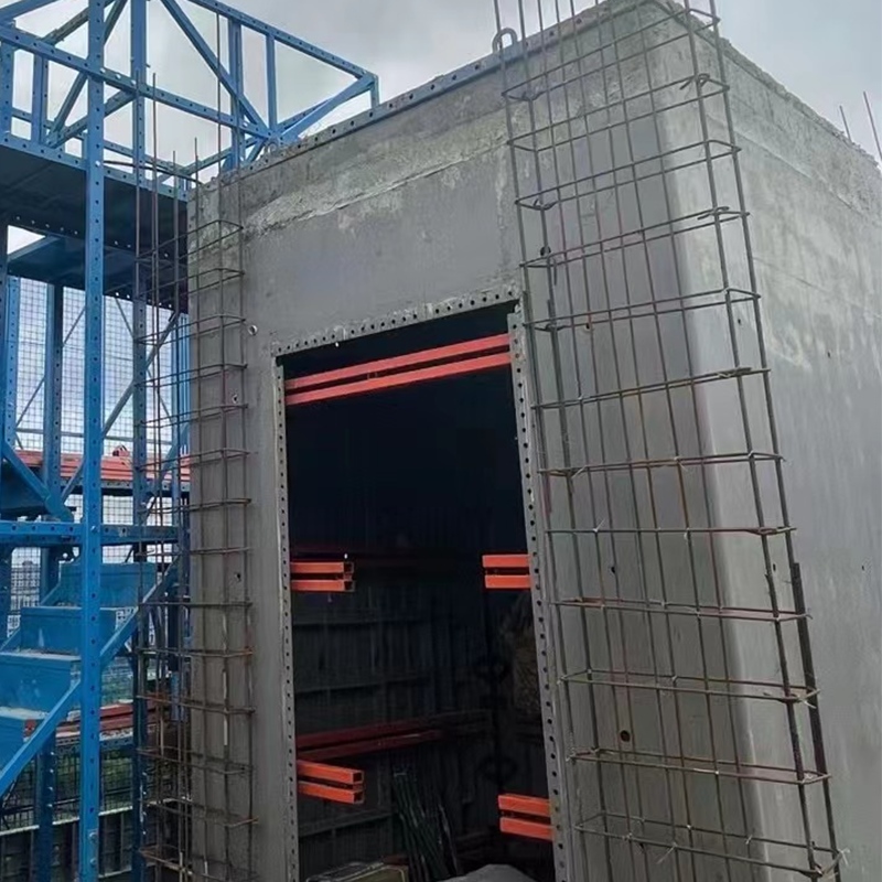 Used for setting up, reinforcing, and protecting elevator shaft formwork in construction projects, it achieves layer-by-layer climbing through the use of a tower crane.
